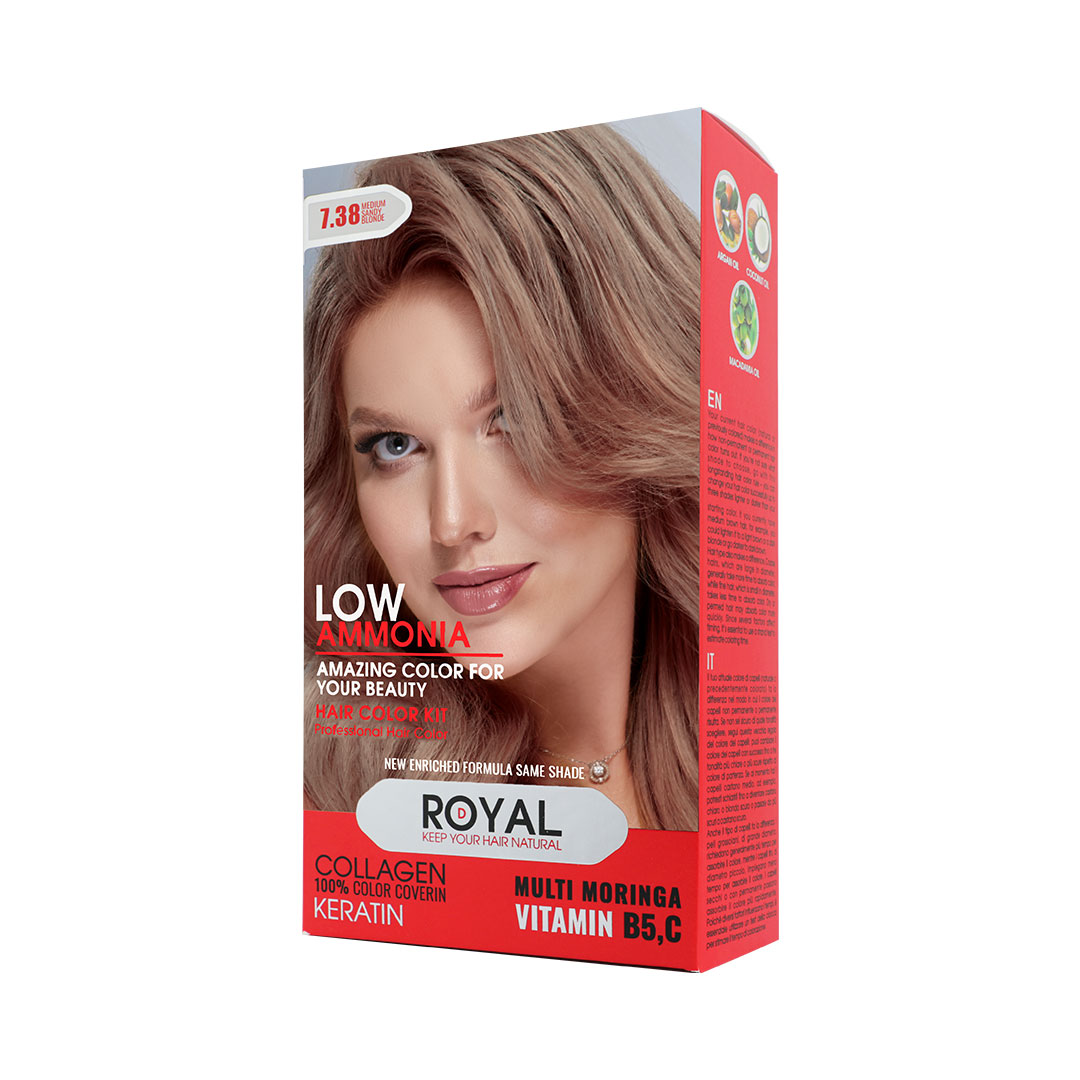 ناموجودکیت رنگ مو بلوند ماسه ای متوسط رویال کد ۷.۳۸
