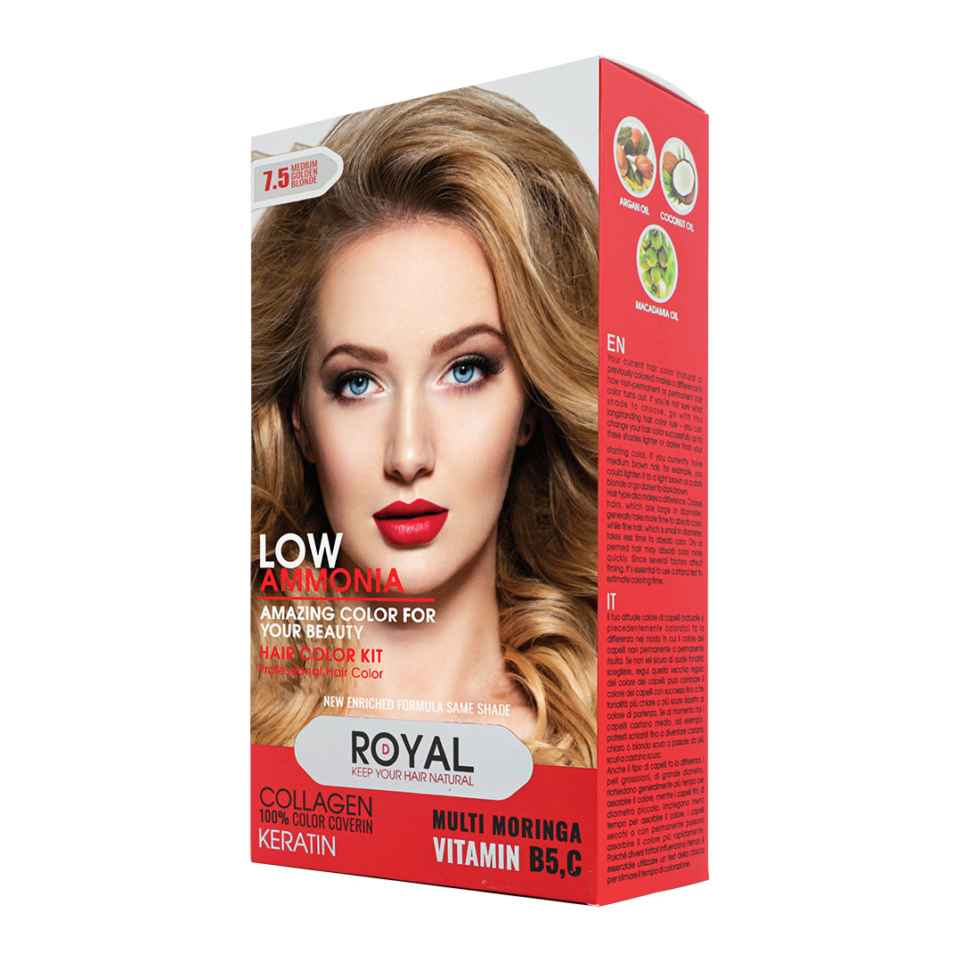 ناموجودکیت رنگ مو بلوند طلایی متوسط رویال کد ۷.۵