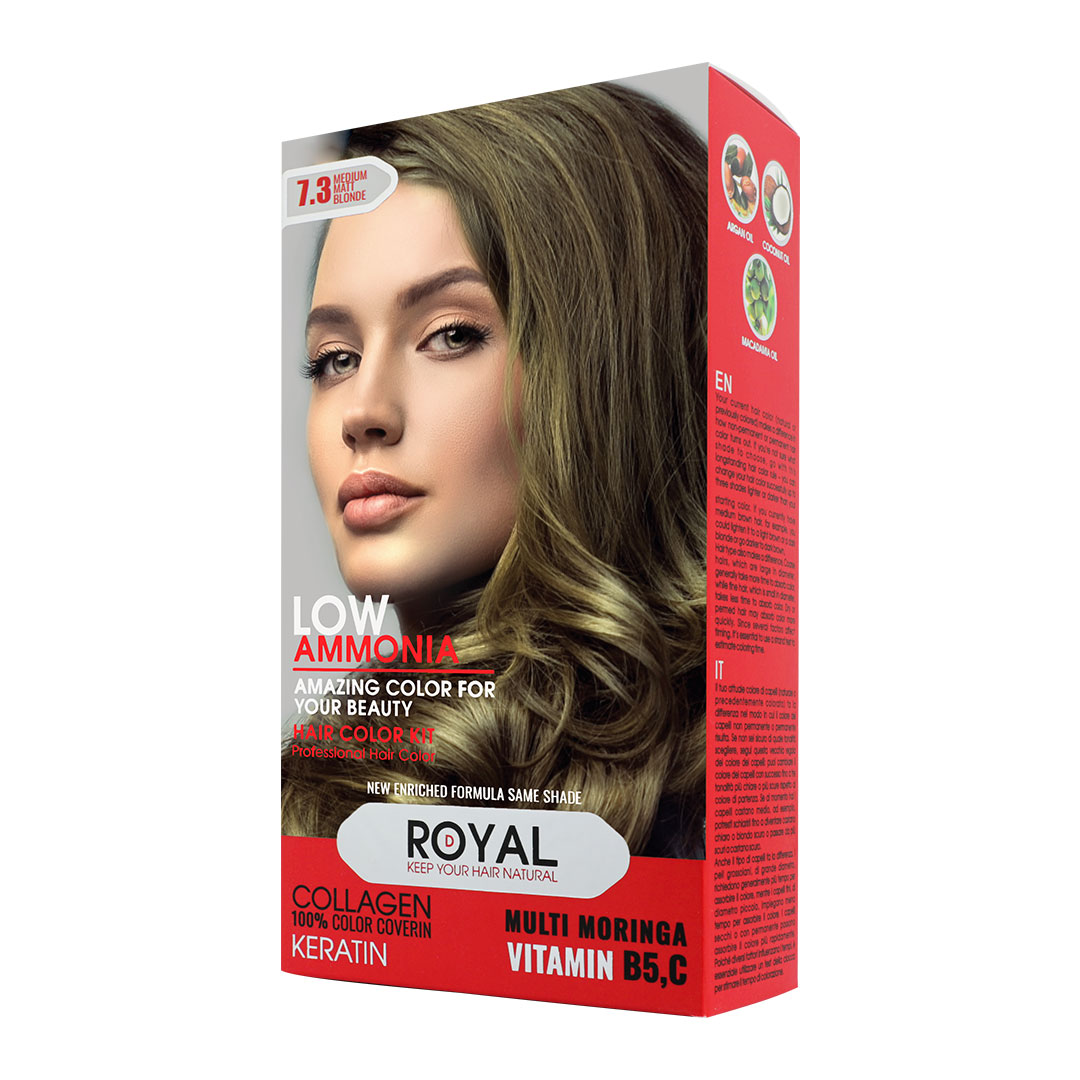 ناموجودکیت رنگ مو بلوند زیتونی متوسط رویال کد ۷.۳