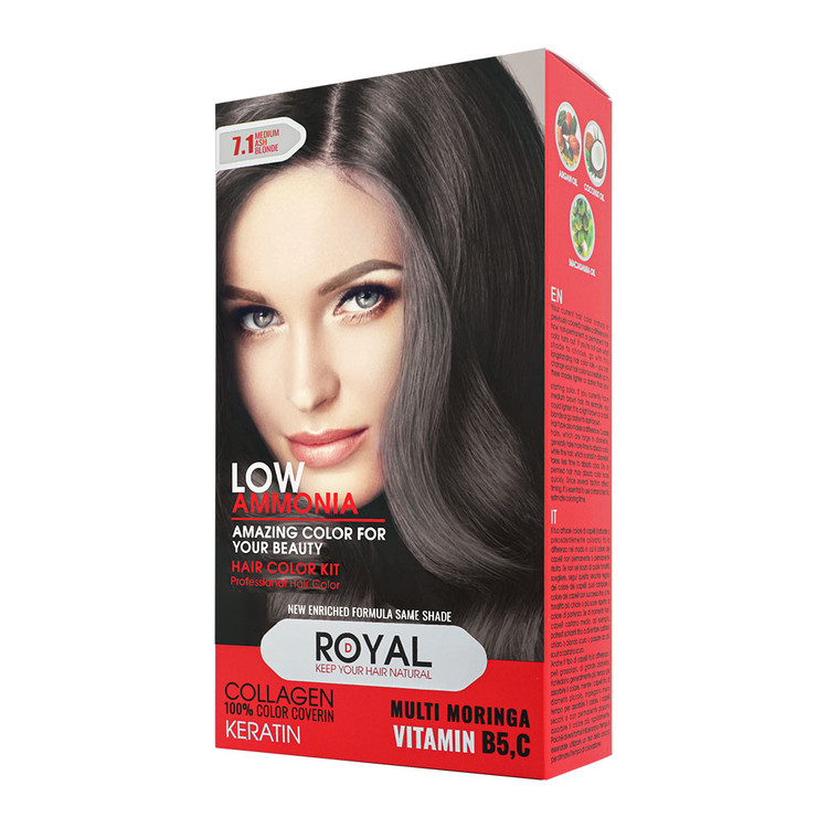 کیت رنگ نو بلوند دودی متوسط رویال کد ۷.۱