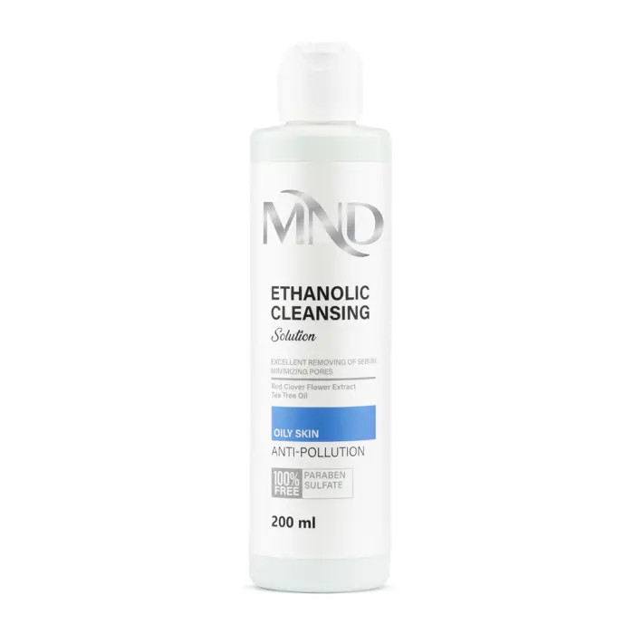 اتانول یکی از موثرترین حلکنندههای مواد روغندوست بوده و استفاده از این ماده در محلول پاککننده MND باعث شده که سبوم پوست در این حلال حل شده و براقیت و چرببودن پوست کاهش یابد. این محصول عصاره گل شبدر قرمز را در خود دارد که به همراه عصاره انار موجب کاهش ترشح سبوم شده و منافذ باز پوست را کوچک میکنند تا زیبایی چهره حفظ شود. ناگفته نماند که محلول پاککننده اتانولی MND از سایر ترکیبات محدودکننده تولید سبوم و کاهشدهنده منافذ باز پوست مثل زینک پیسیای، پیریدوکسین فسفات حلقوی و اسید سالیسیلیک و ترکیبات کاهش دهنده فعالیت باکتریهای مضر در سطح پوست مثل روغن برگ درخت چای هم بهره میبرد که نقش مکمل برای ترکیبات فوقالذکر ایفا کرده و از وخیم شدن وضعیت پوست و ایجاد جوش و آکنه در سطح پوست جلوگیری میکنند. باتوجه به اینکه حذف زیاد سبوم از پوست و یا لایهبرداری خفیف اسید سالیسیلیک میتواند باعث ایجاد التهاب شوند، از بیزابولول نیز در محصول استفاده شده تا جلوی بروز این عارضه هم گرفته شود. باتوجه به اینکه پوستی که سبوم روی خود را از دست داده، مستعد تحریک شدن توسط آلودگی محیطی و ذرات گردوغبار است، باید محافظت از پوست دربرابر این عوامل پیرامونی هم درنظر گرفته میشد و به همین منظور از عصاره گل کاملیا ژاپنی کمک گرفته شده که تاثیرگذاری عوامل پیرامونی در پوست را کم میکند.