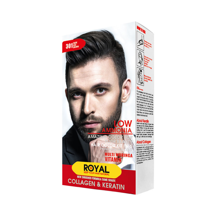 کیت رنگ مو قهوه ای خاکستری تیره مردانه رویال کد ۳۰۱