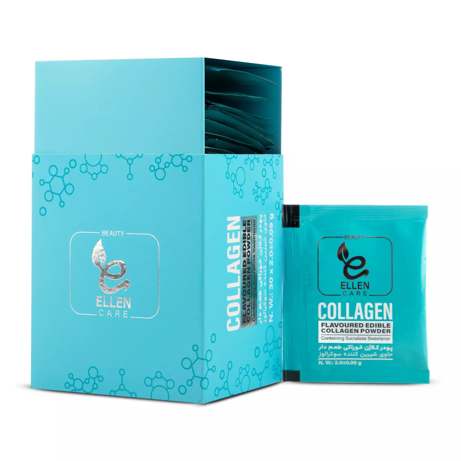 ناموجودپودر کلاژن خوراکی طعم دار حاوی شیرین کننده سوکرالوز بسته ۳۰ عددی الن بیوتی